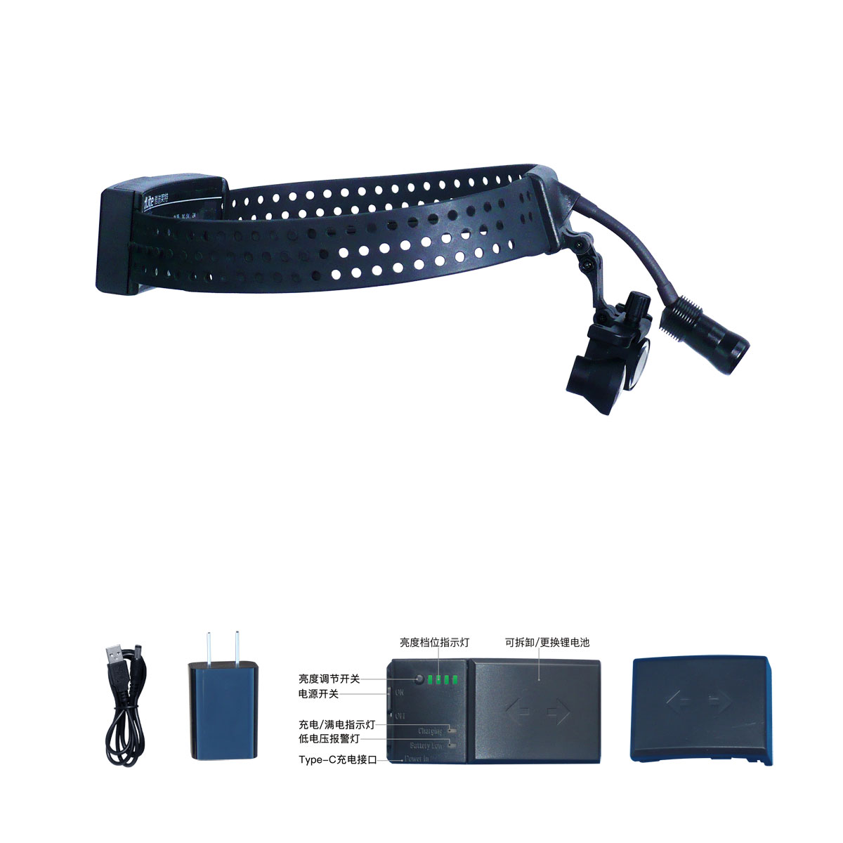 无线头灯 AD8103 光斑不可调+手术放大镜。 双目手术放大镜固定在头带上,有2.5倍、3.0倍、3.5倍、4.0倍可选。